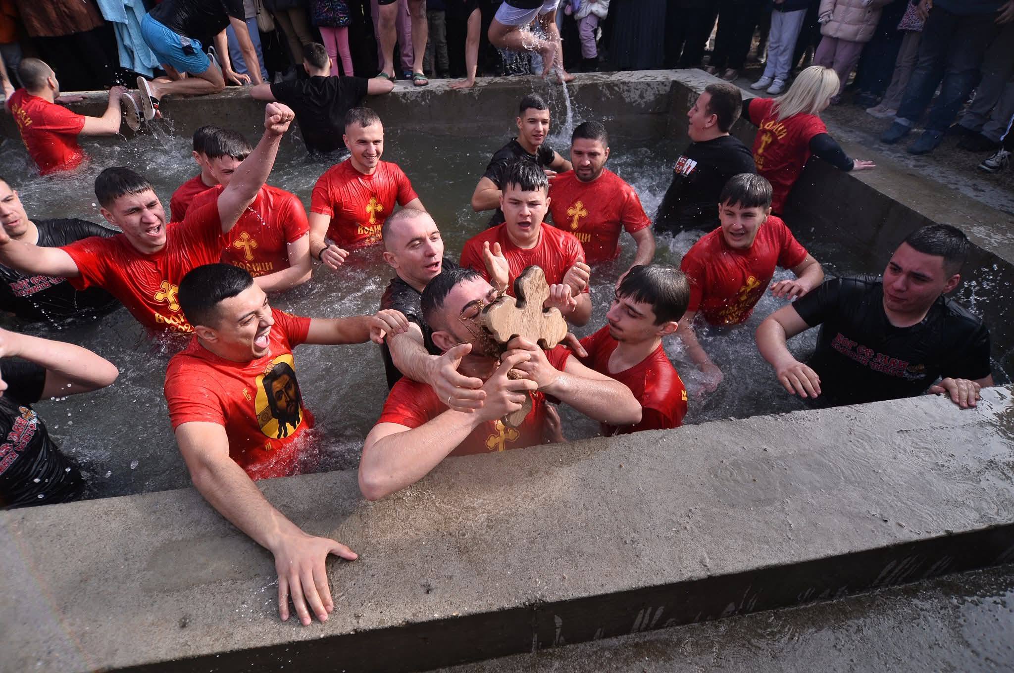 Никола Василевски е најсреќниот верник кој го фати светиот крст во базенот во Црквата Св. Георѓи во Сингелиќ