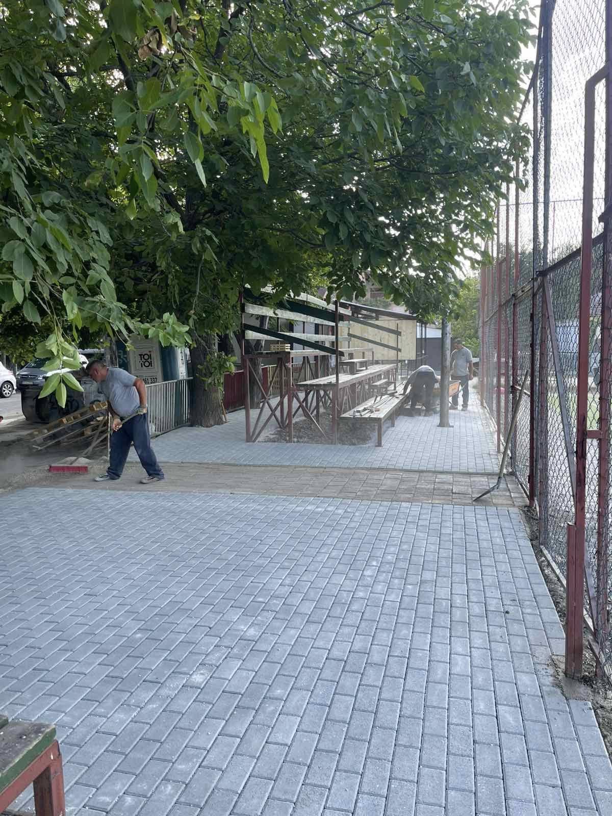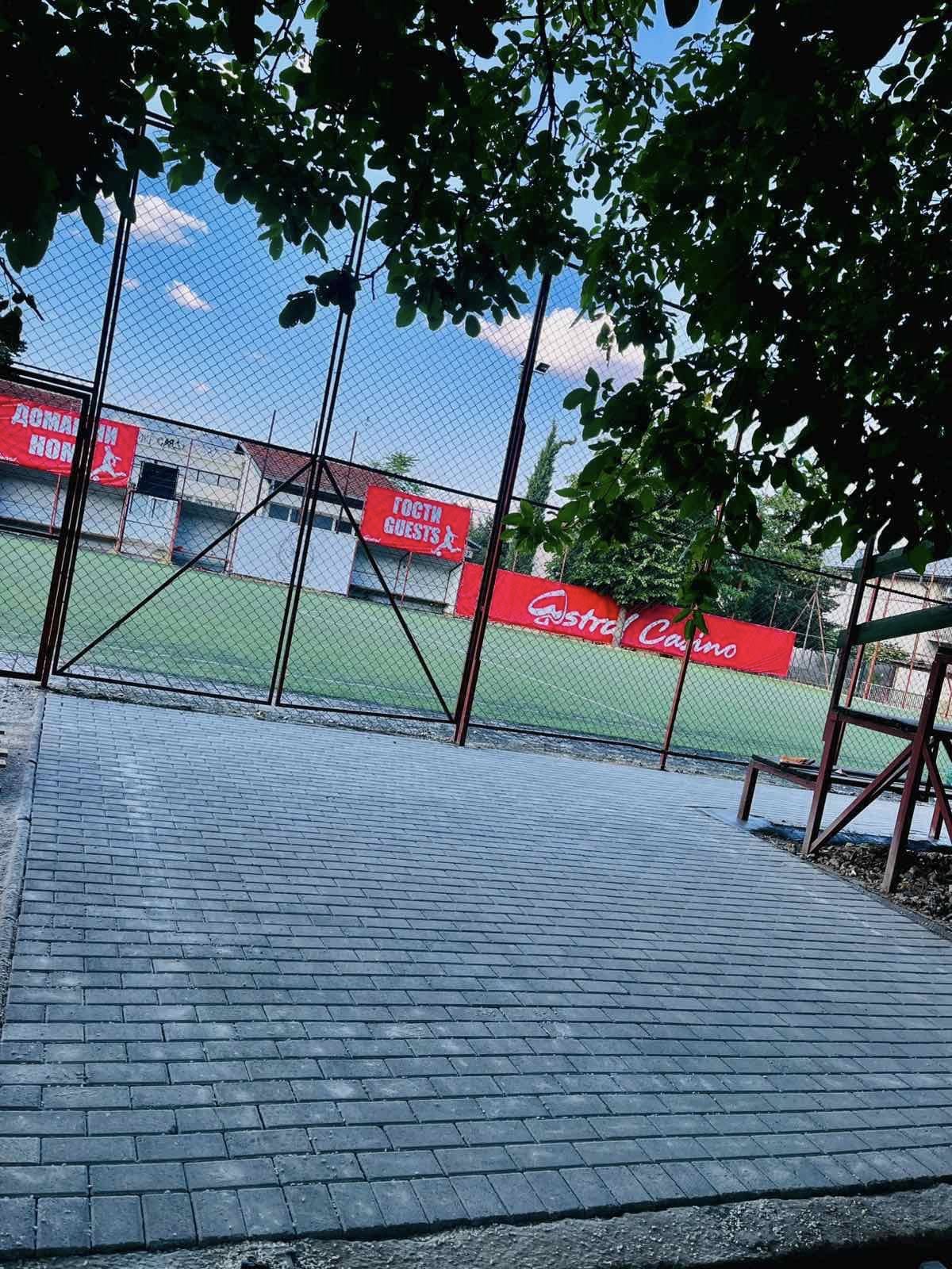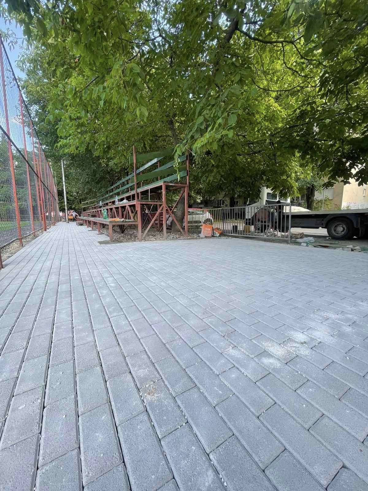 Просторот се поплочува со павер елементи, што ќе овозможи чиста, безбедна и убава околина за спортување и рекреација.
